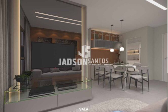 Apartamento: 3 quartos (1 suíte), sala p/ 2 ambientes, WC social, cozinha, área de serviço, opção com