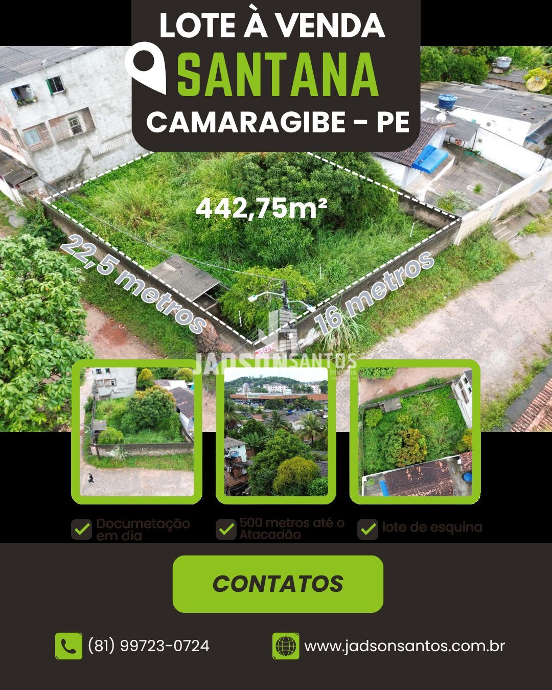 Procurando um terreno para chamar de seu no bairro Santana em Camaragibe-PE? Chegou a sua chance! Com uma área total de 442.75m², este terreno está esperando por você para construir a casa dos seus sonhos!